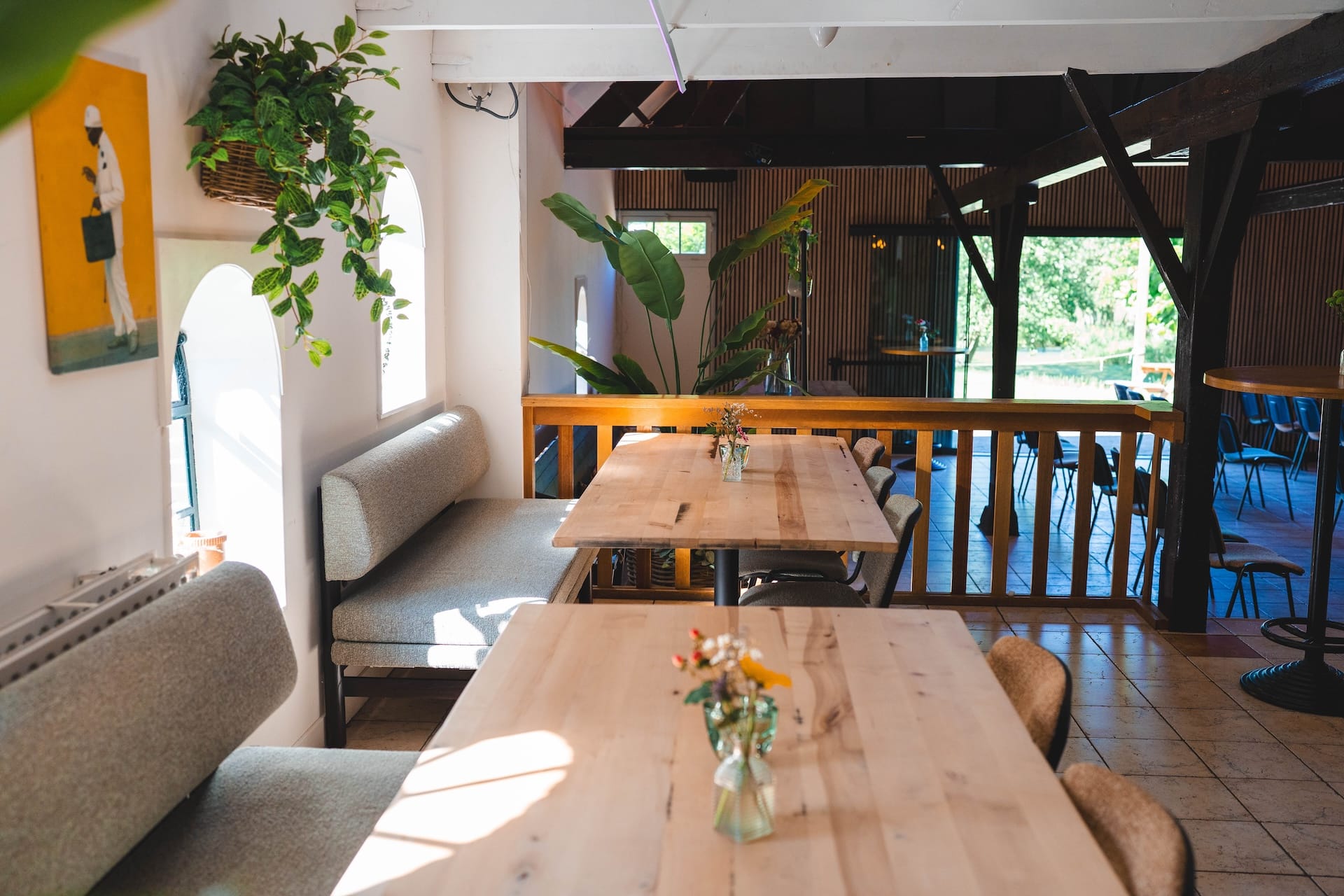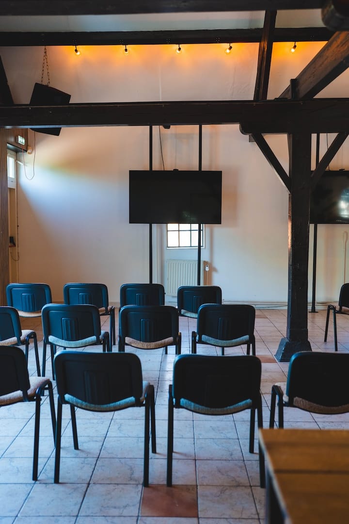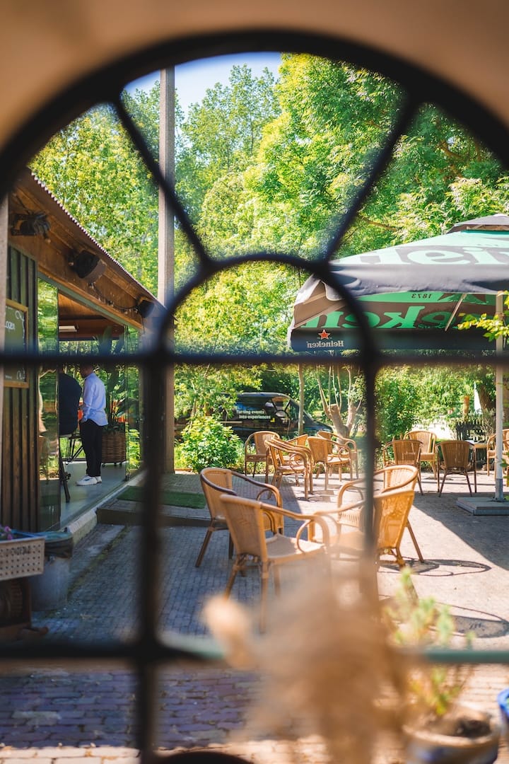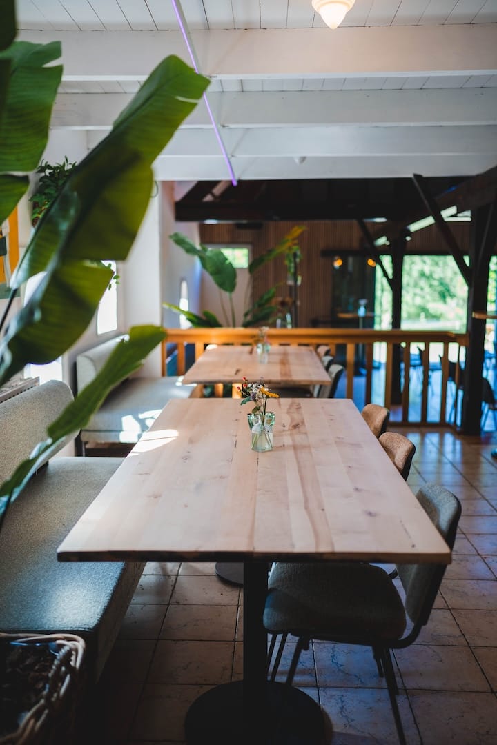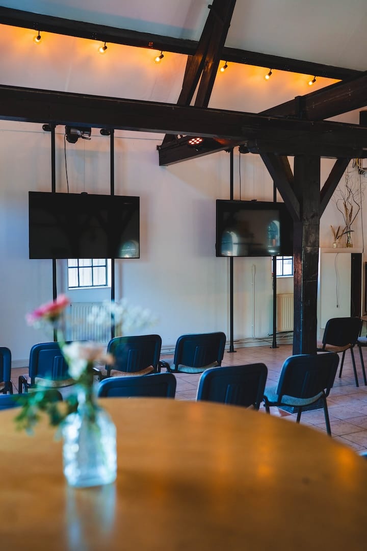 De stal is de plek waar vroeger de koeien stonden en is verbouwd tot een locatie met een grote bar en ruime dansvloer. Met zijn originele steunbalken en raampjes zorgt de stal voor een authentieke uitstraling. Met de schitterende openslaande deuren en een eigen terras maak je in de zomer gemakkelijk het contact met buiten. De stal biedt ruimte voor groepen tot circa 300 personen en is de perfecte locatie voor een groot feest.