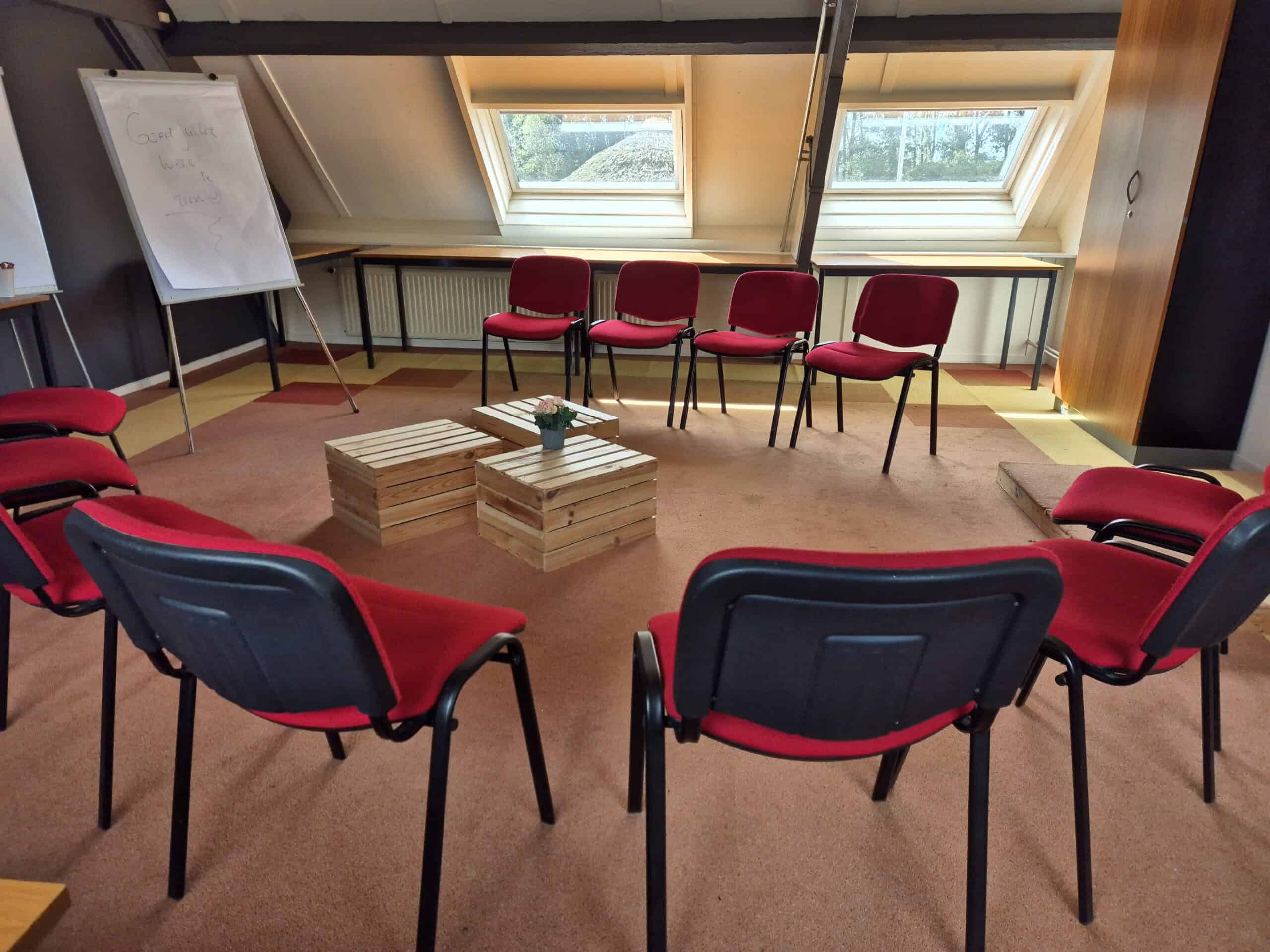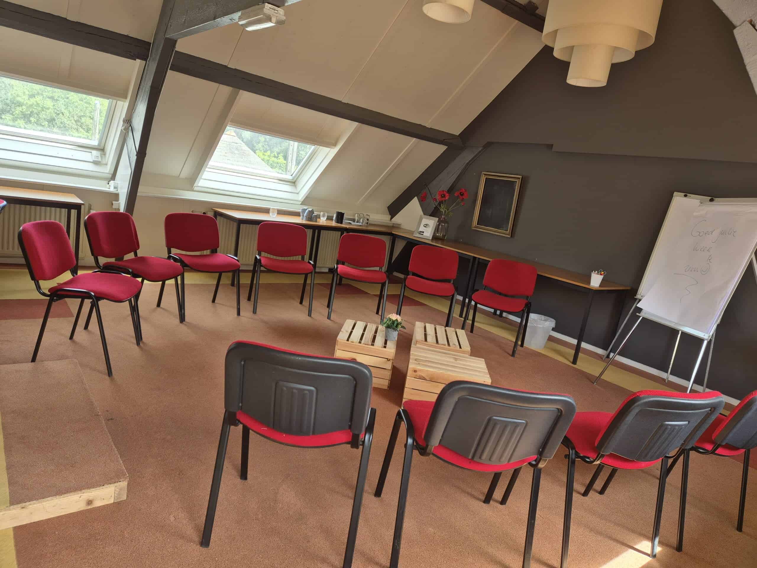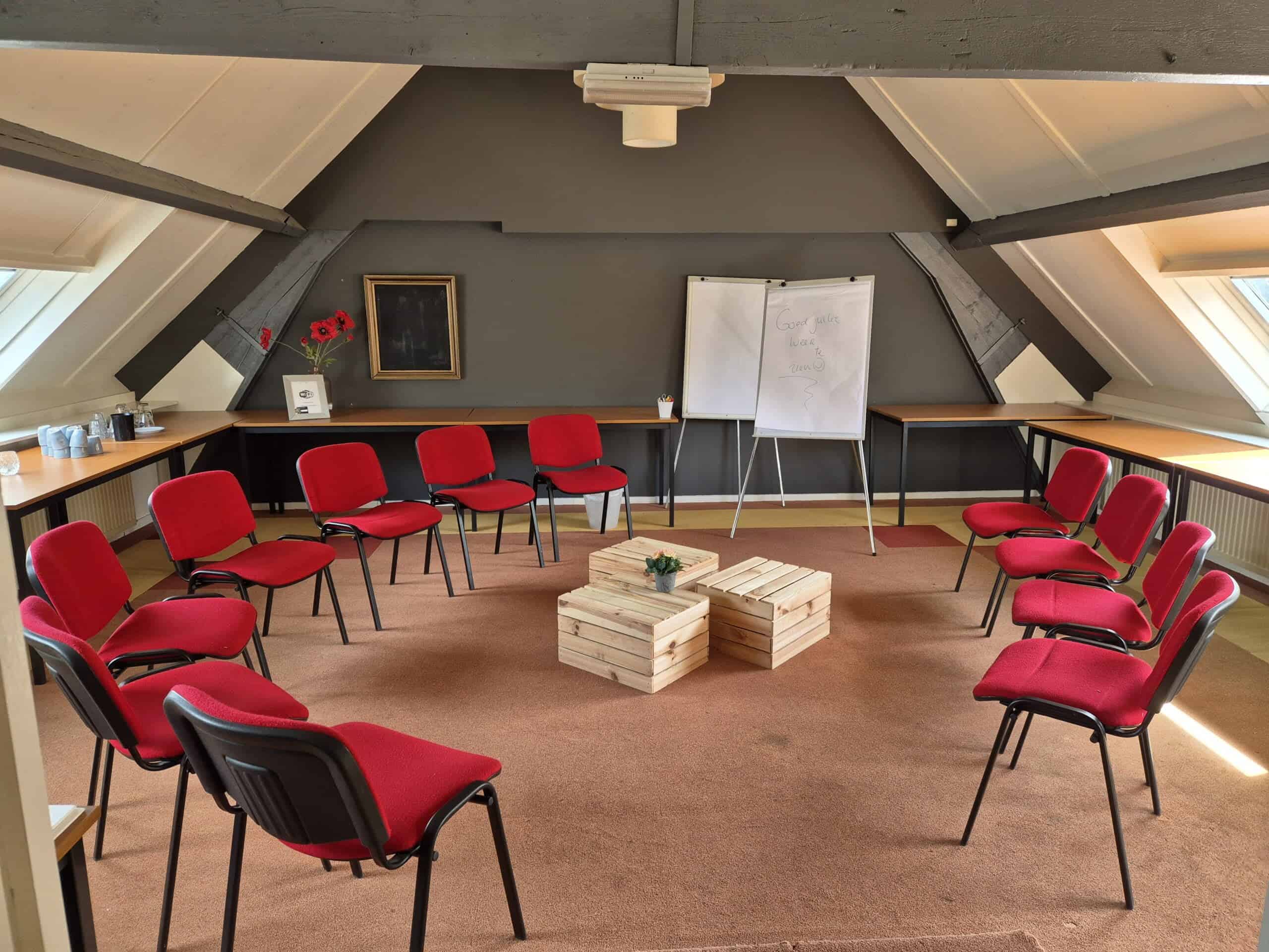 De Merelzaal bevindt zich op de eerste etage van de herenboerderij. De bovenkamers in de herenboerderij zijn verbouwd tot sfeervolle vergaderzalen waar u authentiek en in volledige rust kunt vergaderen. De bovenkamers zijn geschikt voor kleinere groepen tot maximaal 20 personen. De Gruttozaal wordt enkel gebruikt als vergader- & trainingslocatie.