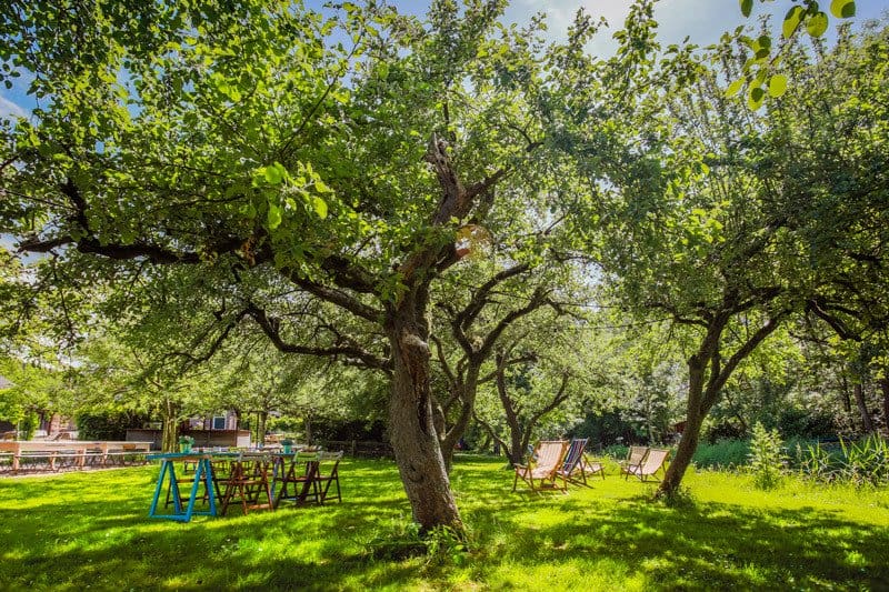 De boomgaard is één van onze favoriete plekjes van de evenementenlocatie. Onttrek je even aan de drukte van de dag en geniet van de rust en ruimte van deze heerlijke plek. Omringd door diverse fruitbomen en fluitende vogeltjes zorgt het voor dat heerlijk vrije vakantiegevoel. Absoluut een uniek plekje waar je volop van het leven kan genieten!