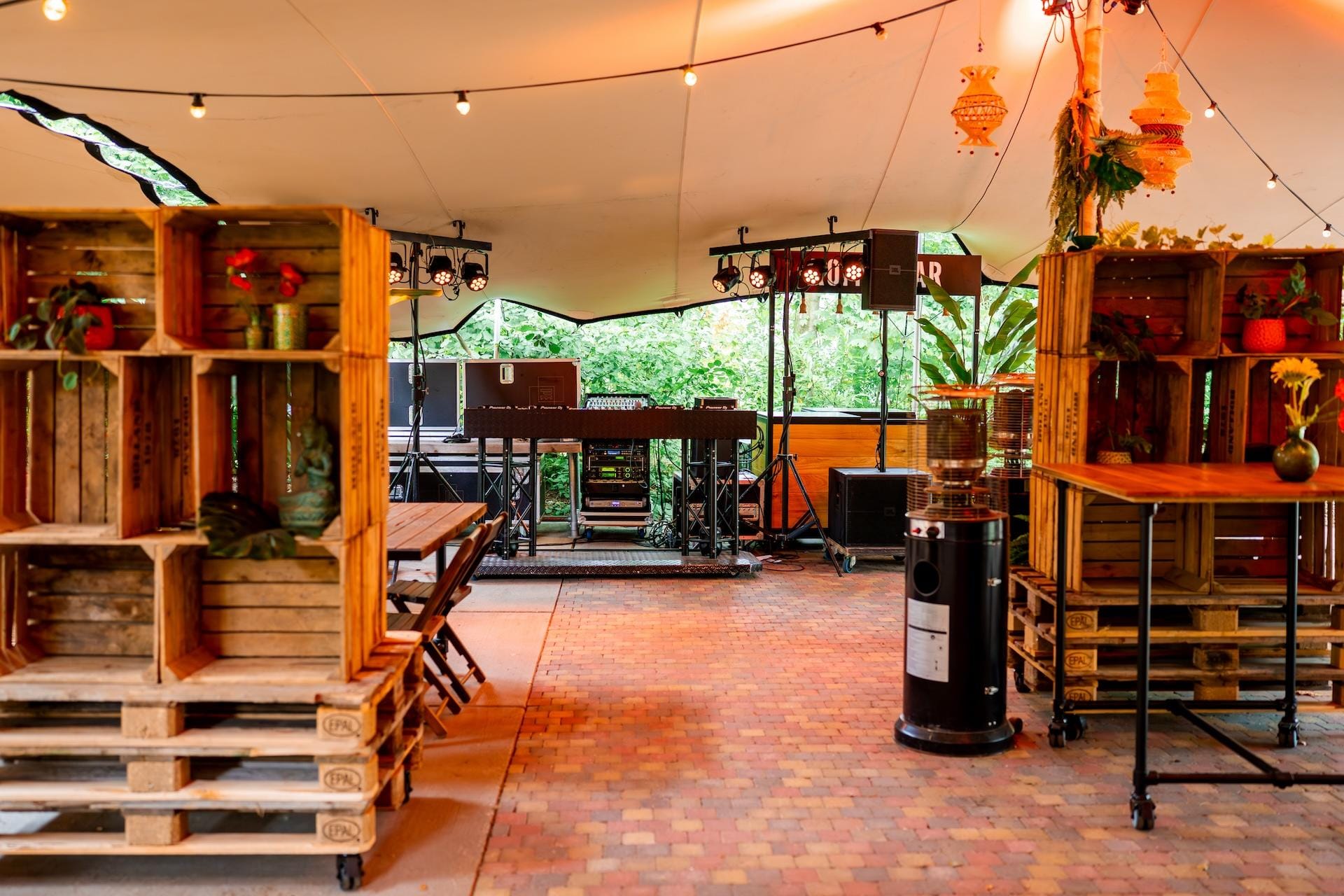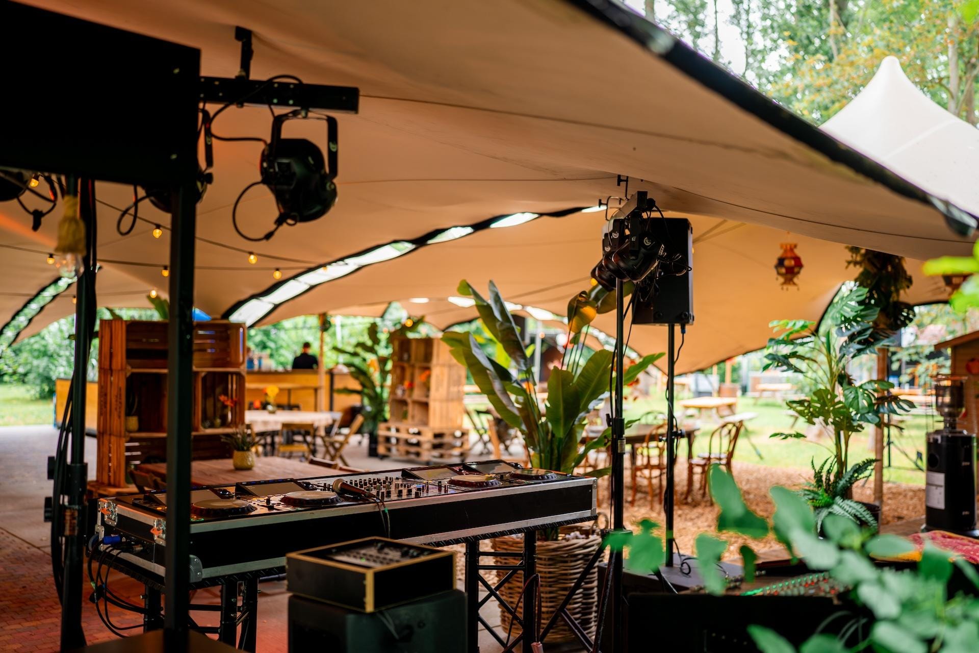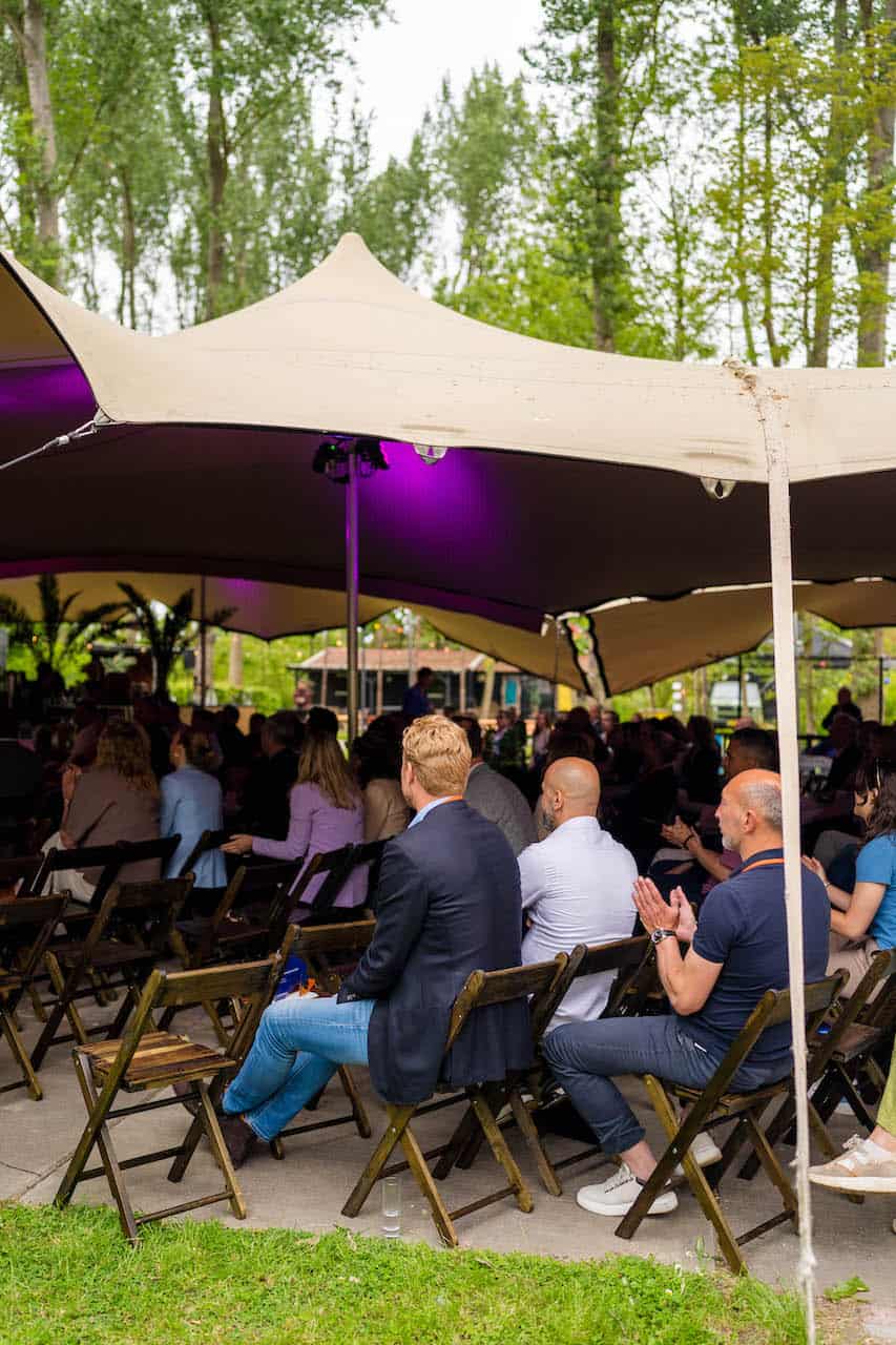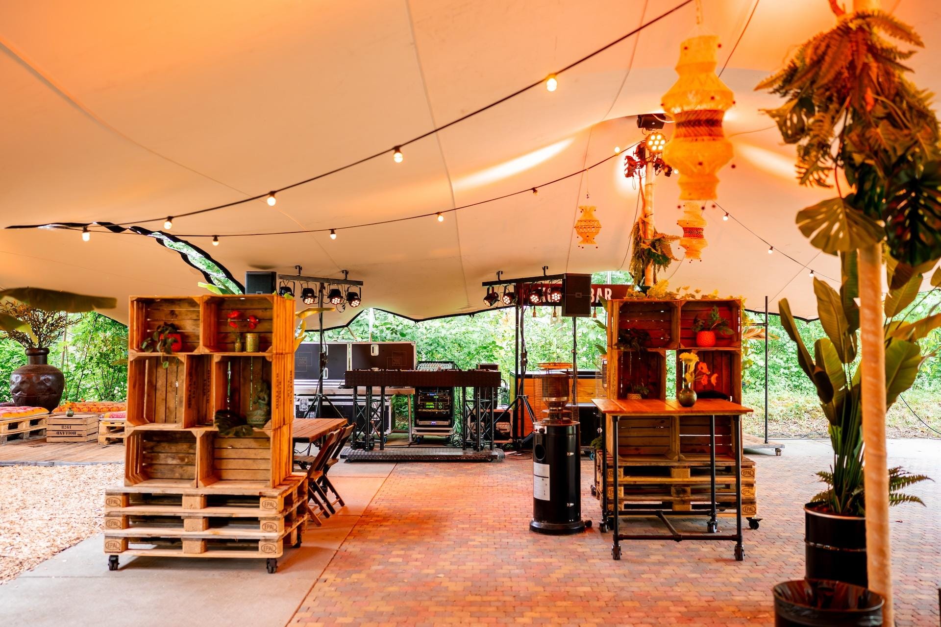 Onze Stretchtent is één van de meest unieke en knusse plekken van de evenementenlocatie. Maar vergis je niet! De tent biedt ruimte voor groepen tot wel 500 personen en beschikt tevens over eigen faciliteiten zoals toiletten, een grote bar en een terras. Als jij er zeker van wilt zijn dat jouw gasten droog en/of in de schaduw zitten, maar wel alsnog kunnen genieten van de frisse lucht en ons prachtige aangrenzende bos, dan is deze locatie ideaal. Wat voor soort evenement je ook wilt organiseren, de Stretchtent heeft alles in huis om er een geslaagde buitendag van te maken!
