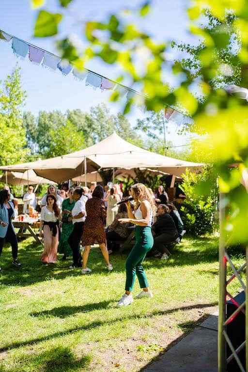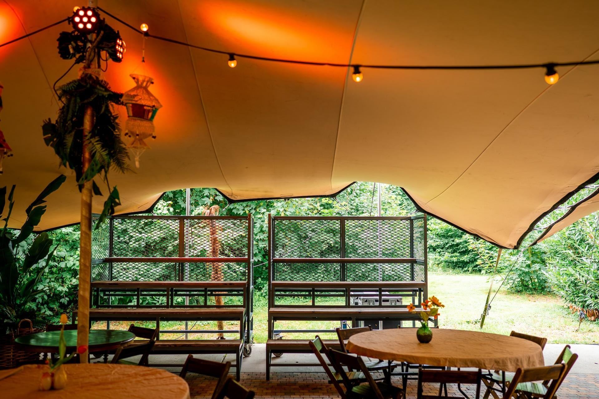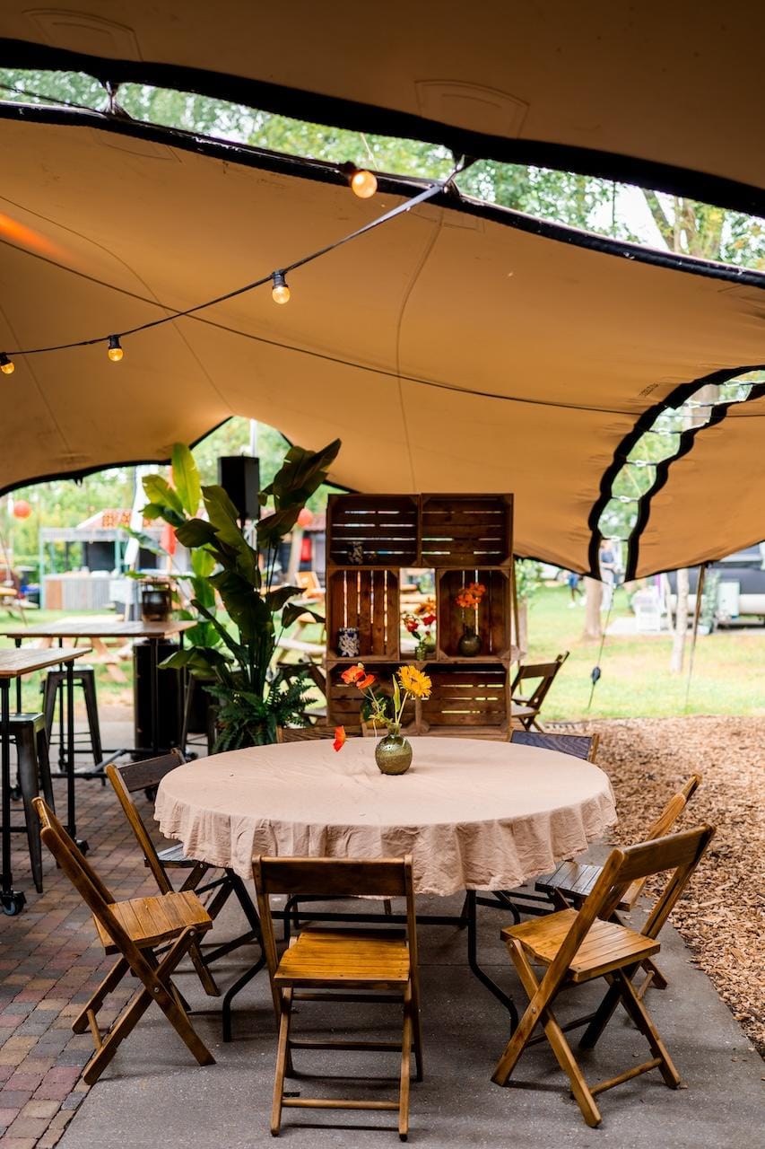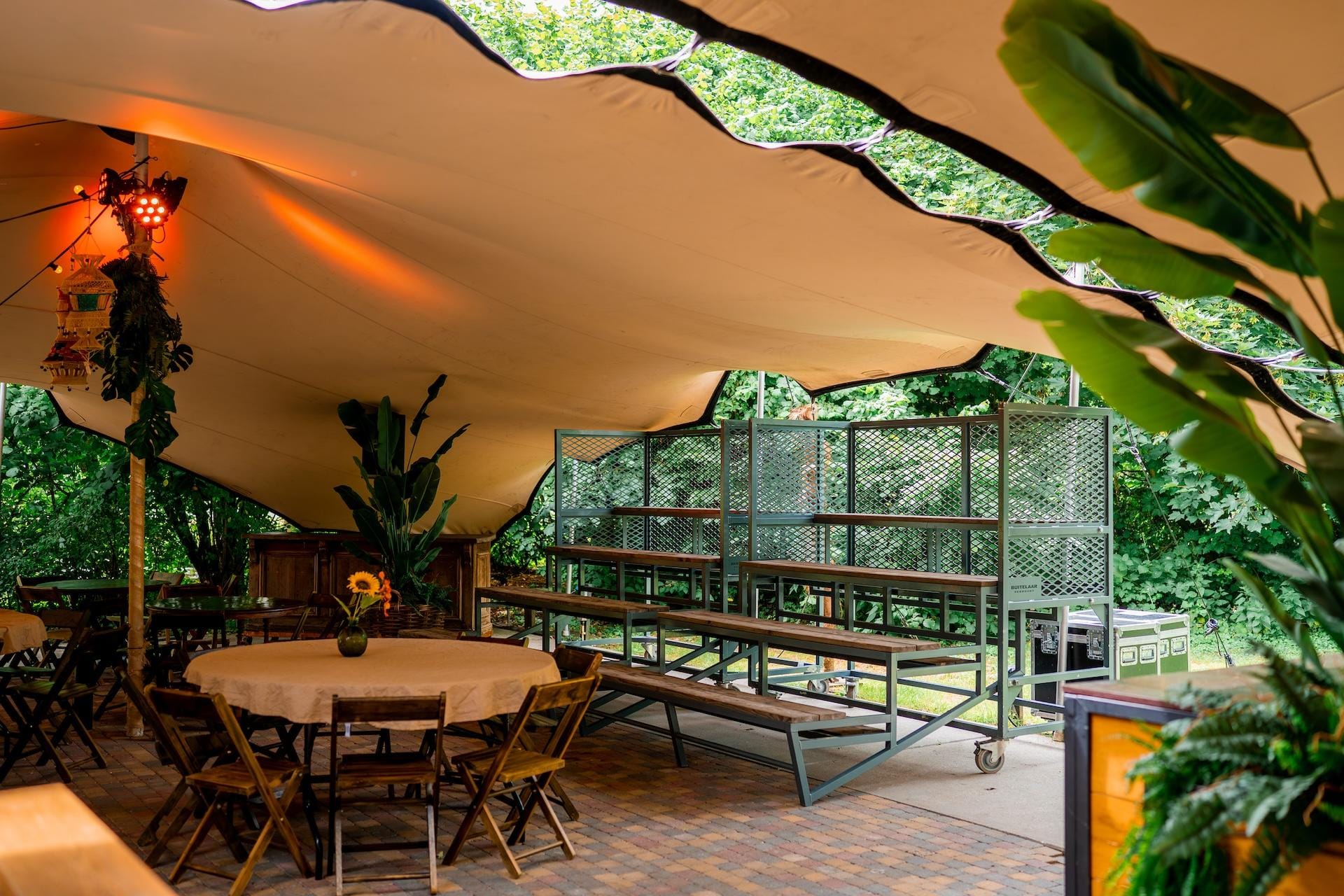 Onze Stretchtent is één van de meest unieke en knusse plekken van de evenementenlocatie. Maar vergis je niet! De tent biedt ruimte voor groepen tot wel 500 personen en beschikt tevens over eigen faciliteiten zoals toiletten, een grote bar en een terras. Als jij er zeker van wilt zijn dat jouw gasten droog en/of in de schaduw zitten, maar wel alsnog kunnen genieten van de frisse lucht en ons prachtige aangrenzende bos, dan is deze locatie ideaal. Wat voor soort evenement je ook wilt organiseren, de Stretchtent heeft alles in huis om er een geslaagde buitendag van te maken!