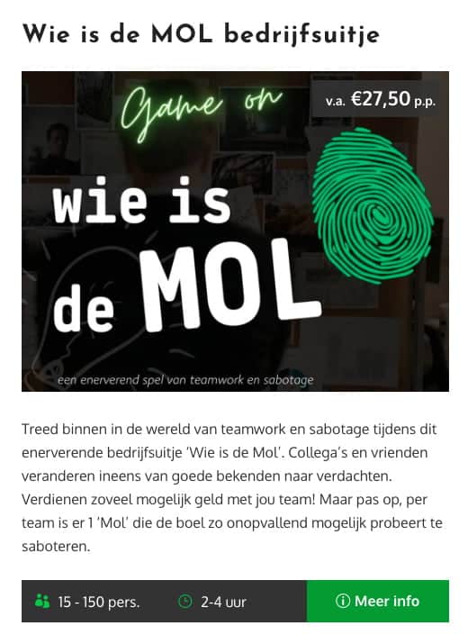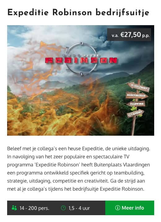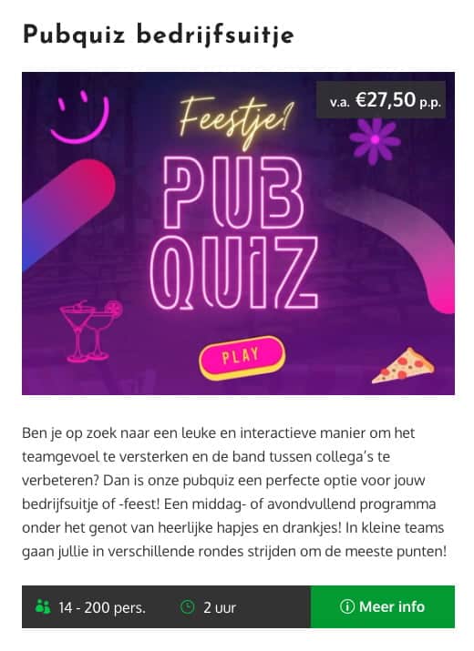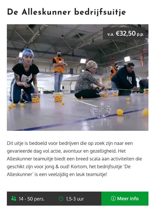 - Ruim aanbod teambuilding activiteiten