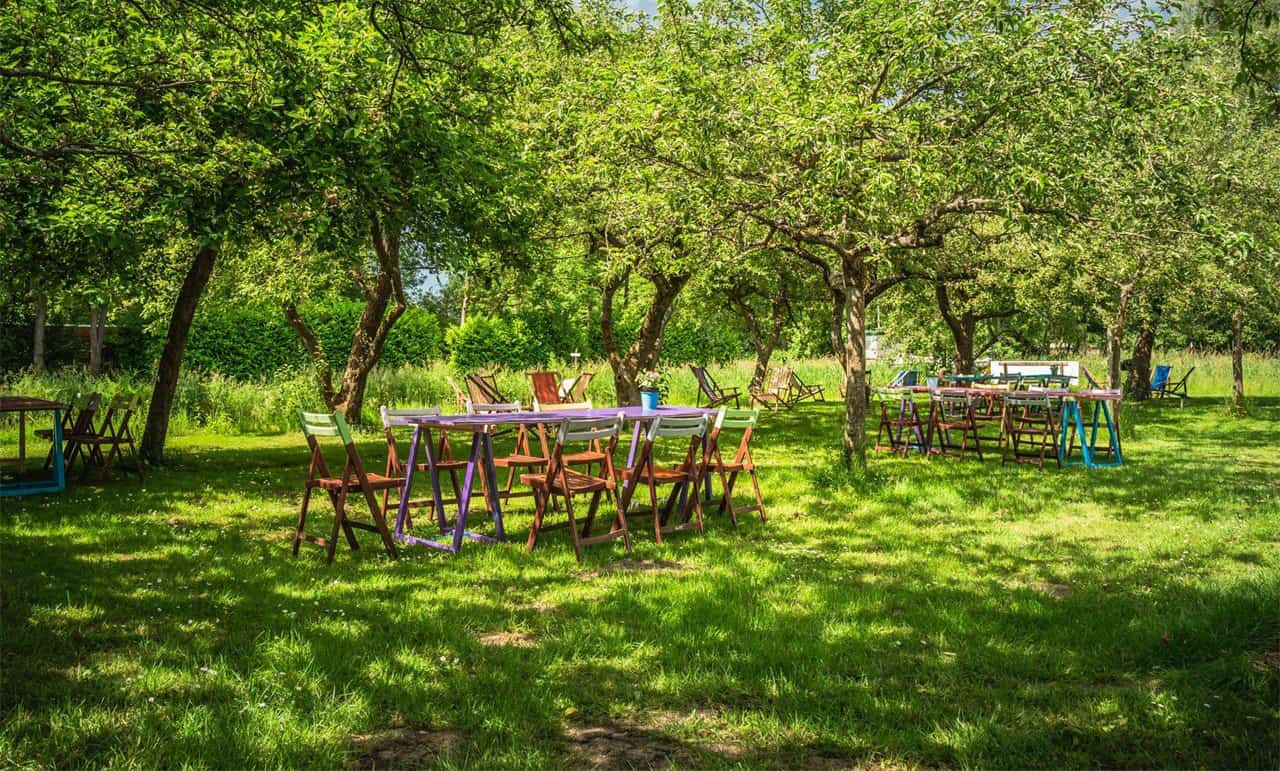Sfeervolle omgeving voor verjaardagen en vergaderingen/congressen. Een prachtige fruitboomgaard voor trouwpartijen of andere feesten.